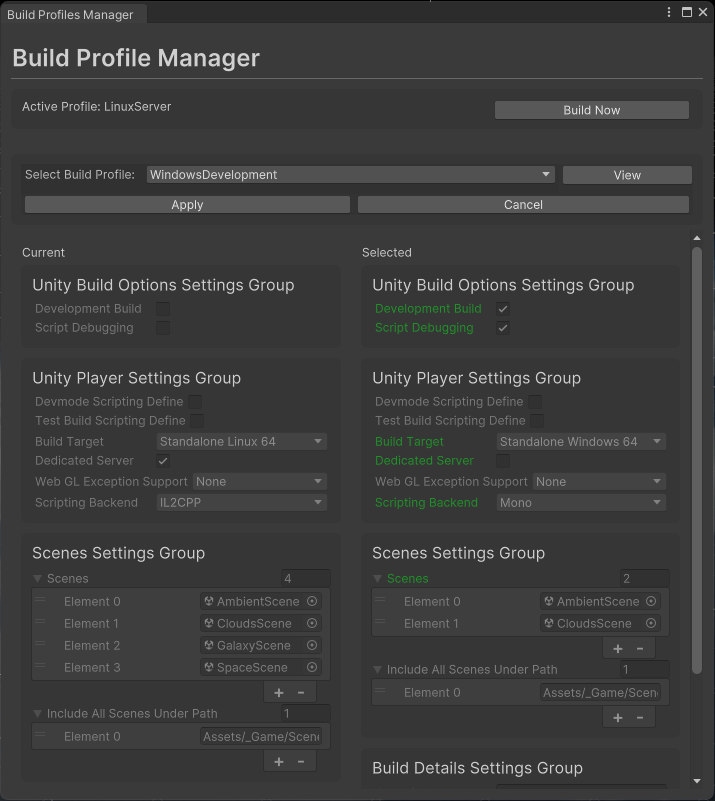 “BespokeCI has the most usable build profile system I've ever gotten my hands on. I like how the Unity extension main build profile window summarizes all of the settings, but the settings groups are their own assets to make it easy to remix variants quickly through composition.”